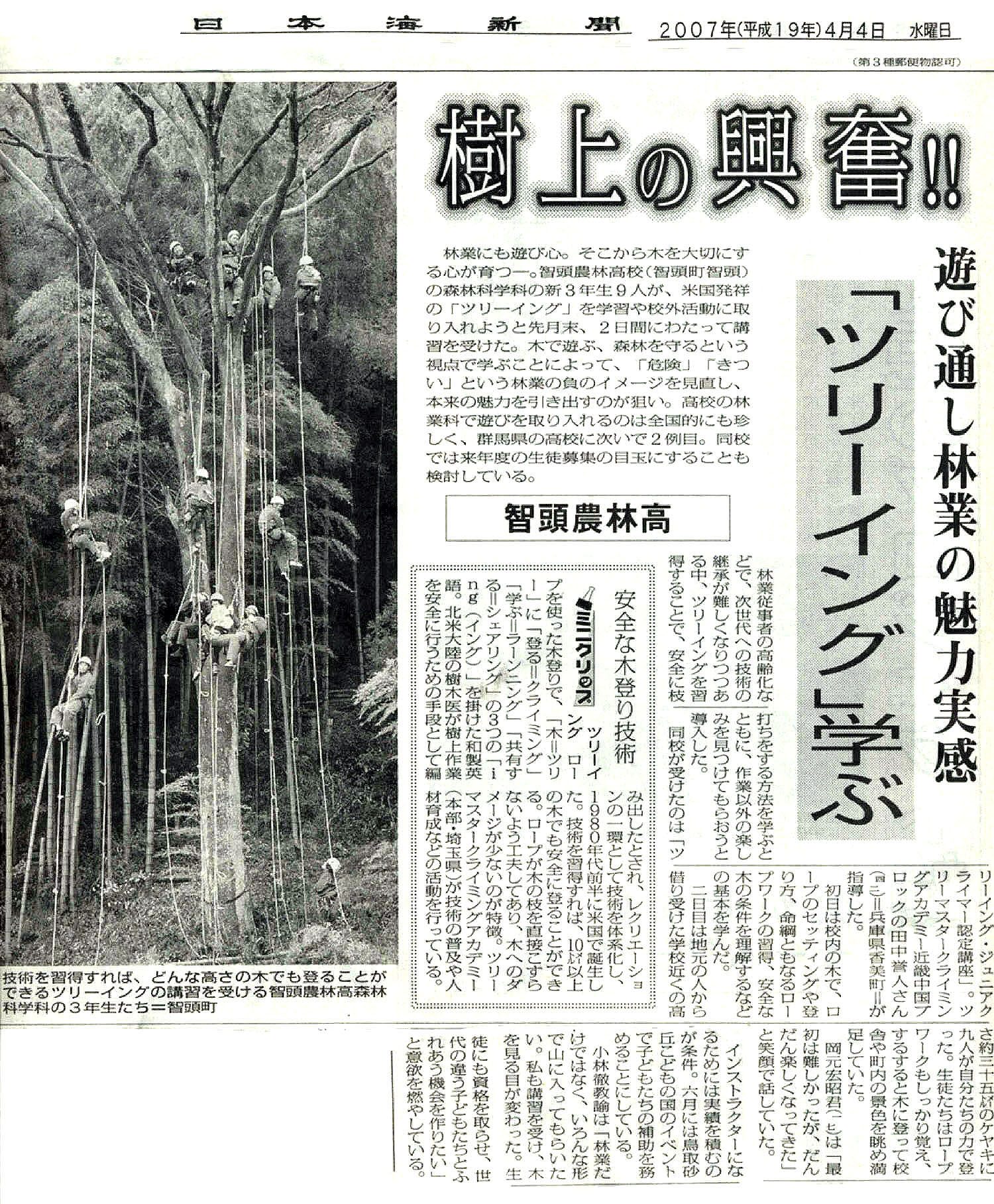 鳥取県立智頭農林高等学校(森林科学科) ジュニアクライマー認定講座