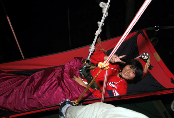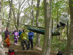 参加者は自由に1日ツリーイング三昧。お昼はもちろん木の上に張ったツリーモックでお弁当です。