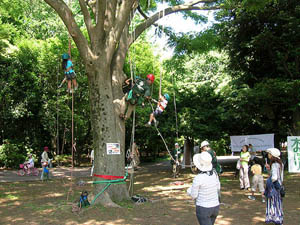 今年は第25回にあたり、毎回100名以上の「ツリーキッズ/Tree Kid’s」が誕生しています。そして、スタッフも非常に楽しみにしているイベントです。 昨年はエアーコリドー(空中回廊)を行い好評をいただきましたが、今年は、「28システム」によるクライミングや「祭旗」を付けたり、取ったりと盛りだくさんなメニューでした。 参加希望者も長打の列ができ、待っていただくシーンもたびたびで・・・。お待ちいただいた皆さん本当にごめんなさい! 来年、またお会いしましょう !! 報告:南関東ブロック |