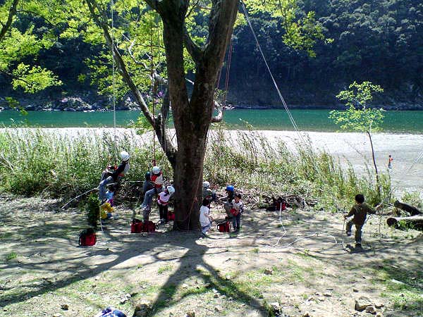 四万十小学校でのツリーイング !! 体験型宿泊施設「四万十楽舎」では、毎月1回四万十の子供たちを集めて四万十小学校を開催しています。 今年度第1回目の体験メニューはツリーイング!! 参加者は小学生が10名天気も最高で、四万十川を眺めながらの木登りに子供たちも大満足♪ 一番人気はトラバースを使ったブランコ、楽しそうな笑い声が対岸まで響き渡りました。 カメラマンは子供に追いつくのが大変そうでしたが・・・。 会場 網代キャンプ場フィールド (四万十市西土佐網代) 報告:KENTA |