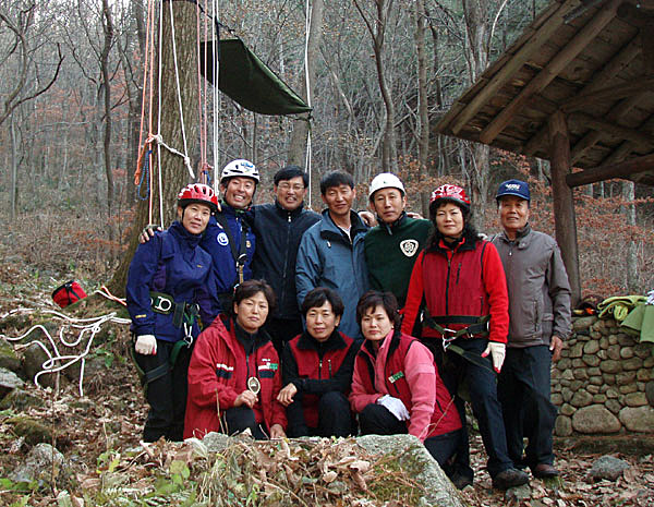 そして12日にはツリーイング普及の拠点作りのため、ソウルから車で3時間ほど東に移動したヘンソンにある国営チョンテーサン森林公園で、森林省施設職員及び公園のインタープリーターのみなさんにツリーイングを体験していただきました。