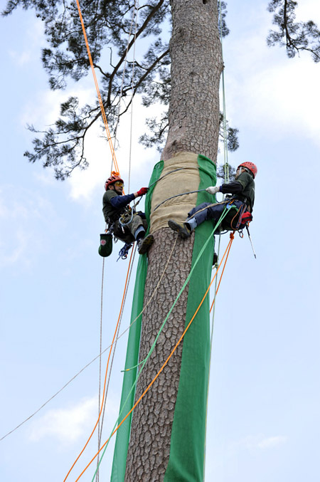 「希望の松」にコモを巻く