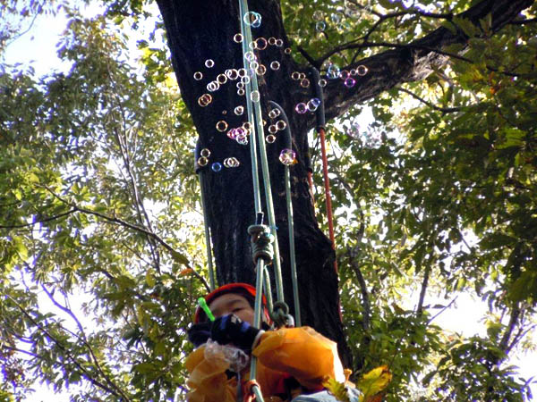 11月12日埼玉県入間郡三芳町にて体験会を行いました。 今回は地域の自然を楽しみながら環境活動を続けている団体『竹の子エコクラブ』の子供達が多数参加してくれました。 前日迄の雨も止み当日は絶好のツリーイング日和!樹上で飛ばしたシャボン玉も七色に輝き大好評!! 三芳のヤマに子供達の歓声が響いていました。 エコクラブの子供達が三芳の自然をいつまでも大切にして、素敵なヤマでまたお会い出来る事をスタッフ一同楽しみにしています!! 報告:北関東ブロック 秋山 |