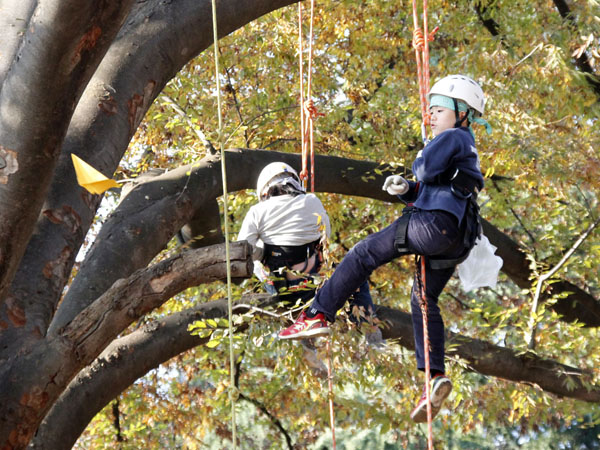 11月23日、光が丘公園にて野外教育事業ワンパク大学「秋のツリーイング」が行われ、小学3年~6年の12人がツリーイングを楽しみました。 もう一つのプログラム「天空のスカイアートギャラリー」では、グループで協力し合って森のアートを創作し、午後は、バディを組んで、自分の夢を書いた紙飛行機を樹上から飛ばしました。 ツリーイング初体験者もいた中で、助け合い、励まし合っていた子どもたちの姿が印象的でした。 クラブマザーツリー 林 恵里 |