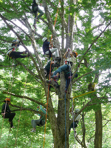 学生よ樹冠を目指せ!! 大学生がツリーイング体験!! 6月30日(日)、山形県鶴岡市朝日地区にある山形大学の演習林にて、ツリーイング体験会を開催しました。 学生たち、また職員の方たちもご参加いただき未知の体験にはしゃいでいる姿を見て、我々スタッフも一緒に、和気藹々と楽しいひとときとなりました!! ツリーイングが創ってくれた「縁」に嬉しさを感じながら、これからも楽しく面白く「Be Safety!!」で皆さんと共に登り続けます!! |