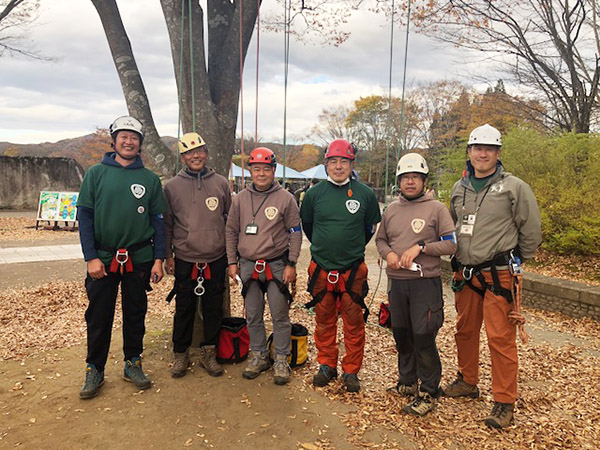 9月17日(土)~18日(日)にかけ、秋田市でT-1講座を実施しました。場所はいつもフィールドを提供いただいている「秋田フォレストヒルズ」です。 二日間とも晴天に恵まれ、気温30℃超えの「気持ちも暑い講座」になりました。 参加いただいたのは、日ごろ秋田で高所伐採をしている林業家の皆さんで、「レクリエーションを通じて次世代に伝えたい」という強い想いを感じました。 普段から仕事で登っている方々なので、バランスも良くスムーズな講座ができました。また、レクリエーションとワーク(仕事)との区別もしっかり理解されていて、イベント開催に向けて動きが加速しそうな雰囲気です。 充実した二日間を過ごすことができ、今後の秋田支部に大いに期待したいと思いま す。 追伸:新しい仲間ができ嬉しい限りです 報告:TMCA本部 |